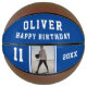 Bleu Personnalisé Joyeux Anniversaire Photo Basketball. Design d'anniversaire avec texte d'anniversaire heureux, nom personnalisé, âge, année et photo. Customisez l'âge, nommez et ajoutez votre photo. Vous pouvez customiser ou effacer n'importe quel texte sur le basket-ball. Grand cadeau d'anniversaire pour un joueur de basket ou un fan.