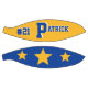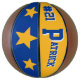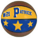 Il s'agit d'un basketball grandeur nature avec deux panneaux conçus avec un nom monogramme (grande première lettre) et un numéro uniforme, dans les couleurs populaires de l'université. Celui-ci est montré en bleu et or. Le deuxième panneau a des couleurs d'équipe avec trois étoiles. Tout le texte, l'art et les couleurs peuvent être supprimés ou modifiés selon vos besoins. Un panneau peut être laissé blanc pour les autographes, etc.