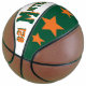 Il s'agit d'un basketball grandeur nature avec deux panneaux conçus avec un nom monogramme (grande première lettre) et un numéro uniforme, dans les couleurs populaires de l'université. Celui-ci est montré en orange, vert et blanc. Le deuxième panneau a des couleurs d'équipe avec trois étoiles. Tout le texte, l'art et les couleurs peuvent être supprimés ou modifiés selon vos besoins. Un panneau peut être laissé blanc pour les autographes, etc.