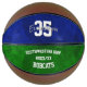 Ce basketball keepsaké est de taille réglementaire et présente les couleurs bleu et vert de son équipe sur deux des panneaux de basket, sur lesquels son nom et son numéro de maillot ainsi que le nom de l'école, le nom de la mascotte et la saison sportive peuvent être facilement customisés - les panneaux bleu et vert du basketball ont une apparence texturée numériquement créé - par katz_d_zynes
