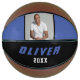 Blue moderne Nom personnalisé Texte Photo Basketball. Arrière - plan noir et bleu avec texte bleu et blanc. Personnalisez-le avec votre photo, votre nom et l'année - vous pouvez modifier n'importe quel texte sur le basket ou l'effacer. Un cadeau parfait pour un joueur de basket, un entraîneur, des amis et la famille. Super souvenir de votre sport favori.