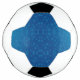 "A soccer ball design with black and white pentagons surrounding a central blue area featuring a dot pattern. Below, the flat pattern layout is shown."