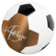 Ce ballon de football personnalisé est doté d'un monogramme et d'un prénom en écriture moderne bronzée et blanche sur un arrière - plan en métal brossé orange brûlé.
