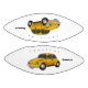 Une voiture classique jaune joyeuse. Dessiné dans un style de dessin animé amusant.