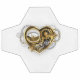 Coeur steampunk mécanique, volumétrique, avec manomètre, acier et or sur arrière - plan blanc. Style Steampunk.