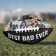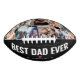 cadeau de football de fête des pères cool avec un arrière - plan noir élégant qui peut être changé à n'importe quelle couleur, un collage photo de 12 photos de famille à remplacer par le vôtre, le dicton "BEST DAD EVER", un coeur rouge mignon, et les noms des enfants.