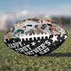 Créez votre propre cadeau de football de 1ère fête des pères avec un arrière - plan noir élégant qui peut être changé en n'importe quelle couleur, un collage photo de 12 photos de famille à remplacer par le vôtre, le dicton "joyeuse première fête des pères", étoiles blanches, et le nom des enfants.