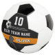 Joueur moderne Nom Numéro Équipe de balle de football. Soccer élégant, football design! Doté de couleurs noir et orange, de lettres audacieuses, de graphismes de football réalistes, ce design sportif est parfait pour tous les fans de football. Le design présente des silhouettes de joueurs dynamiques, une image de football et des détails de bande. Ajoutez le nom, le numéro et le nom de votre joueur.