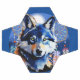 Beau loup aux yeux jaunes, avec des Dreamcatcters amérindiens, dans un paysage et Pleine lune de montagnes Bleues Sauvages. Logo original Vector Round Design isolé sur blanc Copyright BluedarkArt TheChameleonArt.