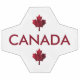 Canada en majuscules rouge foncé surmonté d'une feuille d'érable rouge ondulée et recouverte d'une feuille d'érable rouge à deux tons placée au-dessus et au-dessous du mot Canada. Placez-vous sur un blanc solide.