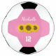 Boule de football personnalisée mignonne, avec une image de tournesol jaune sur un arrière - plan rose et blanc. Avec le lettrage typographique blanc, vous pouvez ajouter vos propres informations. Idéal pour ajouter une touche de pays à votre jeu favori.