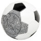 Boule de soccer avec une texture grise et gribouillis. Ballon de football de taille standard.