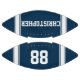 Les joueurs de football américains, les ventilateurs en grille et les entraîneurs d'équipe dont les couleurs d'équipe sont bleu foncé et blanc apprécieront ce design avec un style de maillot de sport en bleu foncé avec rayures blanches et texte personnalisable pour leur nom et numéro. Si vous avez besoin de ce football personnalisé design dans un autre jeu de couleurs, contactez-nous par l'intermédiaire de notre boutique GiftsBonanza (ci-dessous) avant l'achat et nous serons heureux de vous aider.