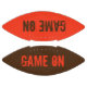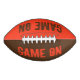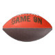Le football est montré dans une couleur marron et orange sur le dessus et la couleur marron sur le bas et a le texte Jeu On. Customisez cet objet ou achetez tel quel.