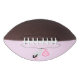 Ce football impressionnant présente une image graphique d'une mignonne cigogne blanche avec des plumes de queue noires accrochées à un paquet de couvertures rose pâle. Il y a du texte rose sur le paquet qui dit "Baby Girl". Ce design est parfait pour célébrer une petite fille.