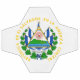Armoiries du Salvador. Les armoiries d'El Salvador sont utilisées sous leur forme actuelle depuis le 15 septembre 1912. Son centre se compose d'un triangle, dans lequel cinq volcans surgissent de la mer. Ils symbolisent les cinq États membres des Provinces unies d'Amérique centrale. Au-dessus des volcans se trouve un casquette phrygien rouge sur un bâton devant un soleil doré et la date du 15 septembre 1821, Fête de l'Indépendance du Salvador. C'est un arc-en-ciel qui signifie la paix. Derrière les armoiries se trouvent cinq drapeaux représentant les drapeaux de la République fédérale d'Amérique centrale élevés. Sous elle, il y a un rouleau qui indique la devise nationale du Salvador : Dios, Unión, Libertad (Espagne, "Dieu, Union, Liberté"). Tout cela est entouré d'une guirlande de lauriers, qui est attachée sous le drapeau national. La guirlande est divisée en 14 parties différentes, qui symbolisent les 14 départements, les unités administratives infranationales salvadoriennes. Tout cela est entouré de lettres d'or, qui forment le mot espagnol REPÚBLICA DE EL SALVADOR EN LA AMÉRICA CENTRAL (anglais : République du Salvador en Amérique centrale).