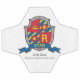 Chevalier manteau d'armoiries style bouclier monogramme lettre R art nom personnalisé ballon de football dans les tons de bleu, rouge, jaune or et gris. Personnalisez avec votre propre nom et nom signification ou d'autres mots pour une touche personnalisée. Cet exemple est pour Ryan Little King. Illustre, lumineux et à l'esprit vif. Image d'un bouclier unique dessin d'une tête de lions, couronne, étoile, design et nom signification par Sarah Trett pour www.mylittleeden.com. D'autres objets, noms et dessins correspondants sont disponibles.