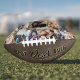 Football en fête des pères vintage avec un arrière - plan rustique en cuir faux marron, un collage photo de 12 photos de famille à remplacer par le vôtre, le dicton "meilleur papa jamais" en noir et or, et les noms des enfants.