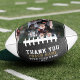 Merci en cuir moderne Coach Nom de l'équipe et Team Photo Football. Le texte est une typographie blanche tendance sur un arrière - plan imprimé en cuir avec rayures. Personnalisez avec votre nom d'entraîneur, le nom de l'équipe et l'année. Vous pouvez modifier n'importe quel texte sur le football ou l'effacer. Un grand cadeau pour un entraîneur ! Ajoutez une photo d'équipe et faites signer par l'équipe les zones non dessinées du ballon avec un marqueur permanent à point fin pour un merveilleux souvenir.