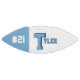 Il s'agit d'un football de taille réelle avec un panneau conçu avec un nom monogramme (grande première lettre) et un numéro uniforme, dans les couleurs populaires de l'université. Celui-ci est montré en bleu clair et blanc Le football est également disponible avec deux panneaux blancs de sorte qu'un 2ème panneau peut inclure des dessins ou de la place pour les signatures.