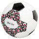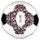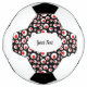 Ce ballon de football a un motif abstrait vibrant de balles rouge vif à l'intérieur de boules blanches plus grandes sur un arrière - plan noir. Customisez votre texte dans l'ovale blanc avec le modèle.