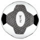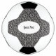 Cette balle de football a un motif abstrait classe de damas noir et blanc avec des parchemins blancs fantaisistes. Customisez votre texte dans l'ovale blanc avec le modèle.