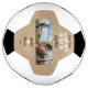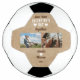 Notre première Saint Valentin Ensemble 2 Photos Soccer Ball. Ballon de football personnalisé rustique avec 2 photos, typographie moderne et tendance disant Notre première Saint Valentin ensemble, 3 coeurs blancs, noms et année sur un arrière - plan rustique beige. Ajoutez vos noms, 2 photos et année et faites un beau cadeau pour votre petit ami qui aime le sport.