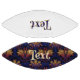 Le produit est décoré d'un motif de motifs répétitifs, inspiré d'un design classique de style baroque. Le motif central ressemble à une fleur de lis stylisée ou à un panache élégant, rendu dans des tons or, rouge et orange vifs avec des effets de dégradé. L'arrière - plan est d'un bleu marine profond, créant un contraste riche qui rend les éléments de design pop. Le motif est luxueux et royal, avec des détails symétriques et des courbes fluides qui lui donnent un aspect sophistiqué et intemporel.