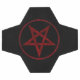 Pentagramme rouge, inversé, texturé en cercle, sur arrière - plan noir. Symbole occulte 666