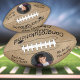 Félicitations Rustiques Grad Black Graduation Photo Football. Football personnalisé avec casquette de graduation, texte personnalisé et photo dans un cadre rond sur un arrière - plan beige rustique. Un grand cadeau et de garder le basket-ball pour un diplômé qui aime le sport.