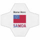 Le drapeau samoan rouge, blanc et bleu, sur un ballon de football, avec le mot SAMOA sous les couleurs du drapeau. Personnalisez avec votre nom pour une touche spéciale. Ou, créez un cadeau customisé en ajoutant le nom de quelqu'un d'autre. La police utilisée pour le nom est Bell Centennial.