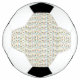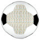 Soccer ball design showing small rainbow and unicorn patterns on white sections, contrasted with black pentagons. The design repeats in a flat pattern view.