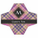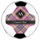 Design rose, jaune doré et écossais bleu. Motif sans couture. Texte et monogramme personnalisés.