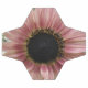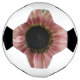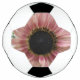Cette superbe boule de football présente une belle photo d'un tournesol rose pâle. Le tournesol est naturellement rose et les pétales ont un anneau extérieur rose pâle et un anneau intérieur rose plus foncé. Le milieu où les graines sont noires. Cette photo a été prise dans un jardin.