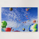 Ce puzzle est doté de montgolfières colorées contre un ciel couvert de nuages !