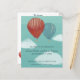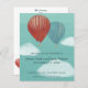 Ces programmes de mariage présentent mes illustrations peintes de ballons à air chaud avec des représentations réalistes de ballons en rouge, bleu et vert avec des nuages blancs dressés contre un ciel bleu clair.