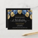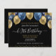 Ballons de parties scintillant en faux bleu et or élégants sur la bordure supérieure. Tout le texte est ajustable et facile à changer pour vos besoins de partie. Super élégant à l'exception de la date anniversaire design modèle de fête. n'importe quelle année, l'âge peut être changé. Élégante typographie moderne simple