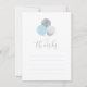 Dites merci à votre invité avec cette simple carte de remerciement. Ce design comporte des ballons mignons et une typographie élégante. Parfait pour un baby shower moderne argent & bleu clair ou anniversaire pour les garçons. Les invitations et les fournitures de fête correspondants sont disponibles dans ma boutique BaraBomDesign.
