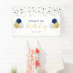 Cette jolie bannière d'anniversaire est ornée de confettis bleu or et marine et de graphismes en ballon. Vous pouvez customiser le texte de votre événement. Un décor moderne et parfait pour fêter un anniversaire de garçon. Les invitations et les fournitures de fête correspondants sont disponibles dans ma boutique BaraBomDesign.