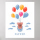 Ballons Bleus Ours En Teddy Mignonne Poster Nom Du Garçon. Un joli dessin d'un ours en peluche avec des ballons bleus, rouges et jaunes pour un garçon. Ajoutez votre nom ou effacez-le.