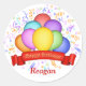 Pour vos invitations de fête, cartes d'anniversaire ou toute autre décoration d'anniversaire avec une surface lisse, n'oubliez pas d'ajouter ces joyeuses ballons d'anniversaire et Stickers de bannières. Ballons & bannières d'anniversaire est une illustration originale de Debi Payne Designs. Il s'agit d'un ensemble de ballons multicolores aux couleurs vives en rouge, turquoise, violet, orange, rose, jaune et bleu. Devant les ballons se trouve une bannière rouge défilant qui dit "Joyeux anniversaire". Les ballons et la bannière sont entourés d'une célébration de confettis multicolores d'étoiles et de serpentins. Personnalisez ce design festif en ajoutant le nom de la personne d'anniversaire spéciale sous la bannière. Coordonnez tous vos besoins de fête en recueillant tous les produits de Ballons d'anniversaire heureux.