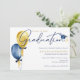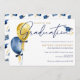 Invitation de diplôme avec de magnifiques ballons d'aquarelle et casquette. Facile à personnaliser avec vos détails.