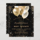 Pour un Baby shower élégant, neutre pour le genre. Un arrière - plan noir élégant. Décoré de parties scintillant dorée foncée, de mousseux et de ballons. Personnalisez et ajoutez un nom, des détails du parti. Le nom est écrit avec un script de style manuscrit