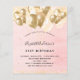 Pour un 21ème anniversaire élégant (ou tout âge). Arrière - plan rose vif, parties scintillant dorée et faux ballons d'or. Personnalisez et ajoutez un nom, 21 ans et les détails de la fête. Le nom est écrit avec un script de style manuscrit