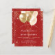 Pour une Quinceañera élégante, fête du 15e anniversaire. Un arrière - plan rouge branché. Décoré de parties scintillant dorée, de mousseux et de ballons. Personnalisez et ajoutez un nom, un âge et des détails de la fête. Le nom est écrit avec un script de style manuscrit