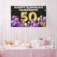 Bannière du 50e anniversaire avec des ballons à Parties scintillant d'or et de violet et personnalisation facile!