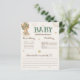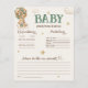 Ourson avec ballons verts sauge beige ivoire et beige clair Fête de baby shower et carte de prédictions et de conseils pour bébé avec texte personnalisable, mettant en vedette le plus mignon des ours volant haut avec de mignons ballons à air chaud ! Cette carte ourson verte de style bohème est parfaite pour les fêtes de baby shower mixtes, célébrant l'arrivée d'une fille ou d'un garçon. Imaginez un adorable ourson avec un noeud vert autour du cou, tenant des ballons avec délice. N'oubliez pas d'explorer la collection complète !