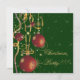 Une élégante invitation de Noël avec des ornements de Noël dorés, des rubans et des étoiles pétillantes sur l'arrière - plan vert. Personnalisez-le avec votre texte. Parfait pour votre entreprise, entreprise ou bureau.