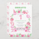 Invitation de premier anniversaire rose avec aquarelle Florals, coeurs et ballons 1er design de premier anniversaire
