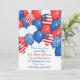 Une invitation festive avec ballons rouges, blancs et bleus avec étoiles et rayures. Parfait pour les fêtes d'été, les barbecues ou les célébrations patriotiques, comme le 4 juillet ou le Memorial Day.